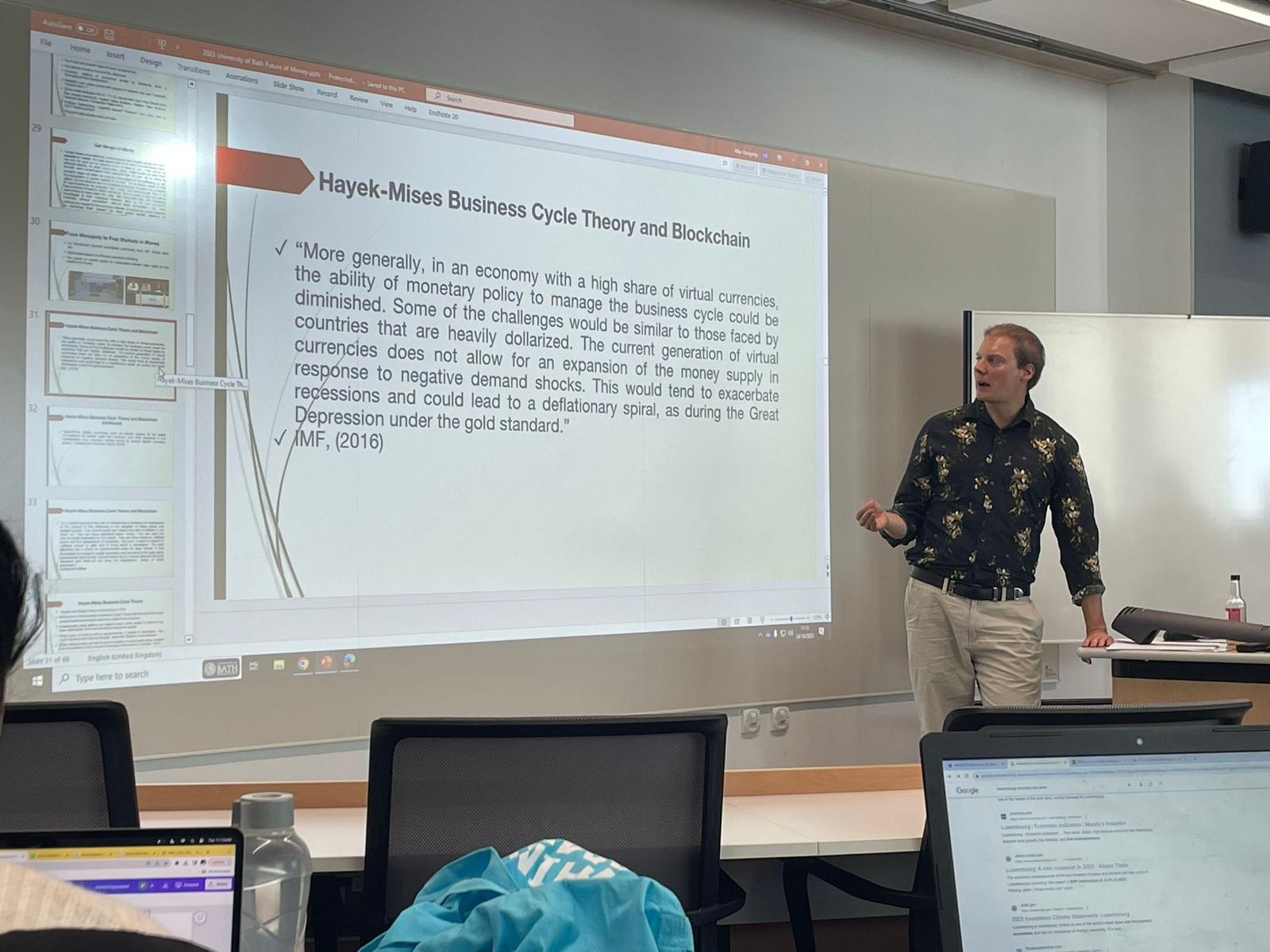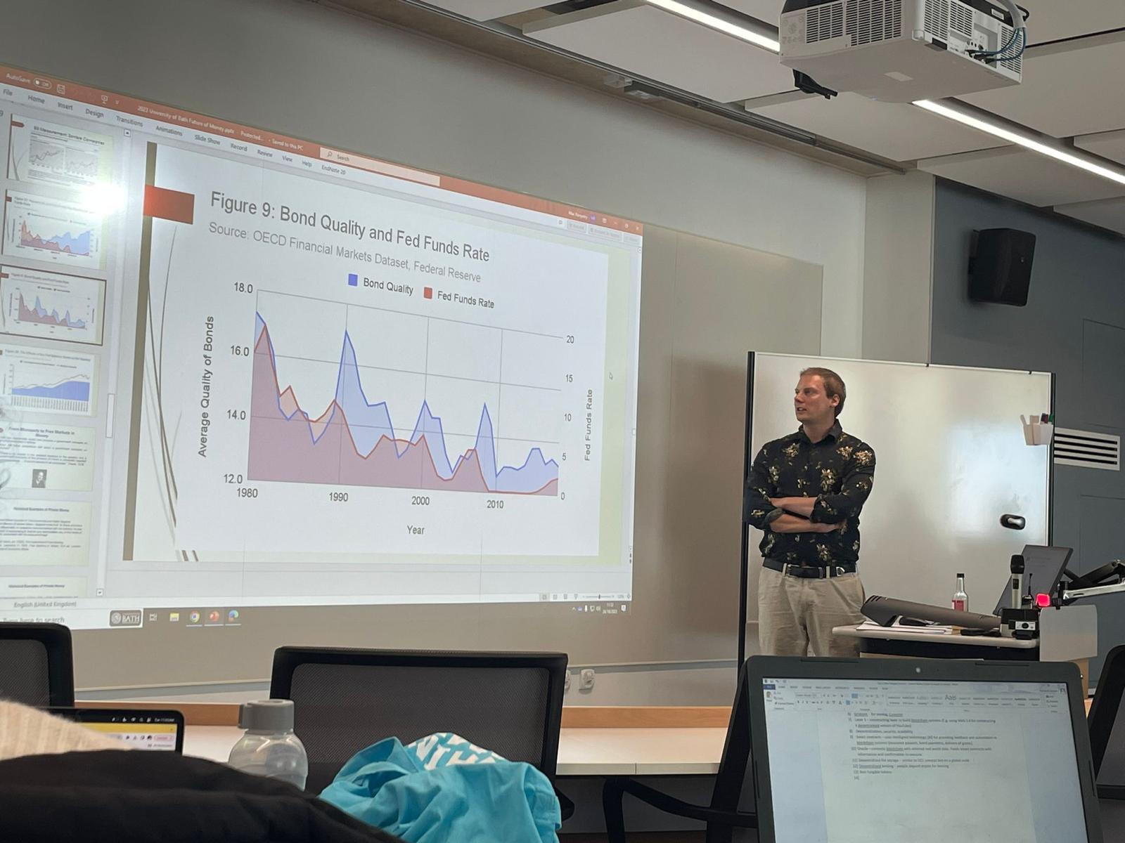 The photos shown are from lectures given to MBA students at the University of Bath, where Max has lectured for the last three years. Bath was the Times University of the Year last year and has one of the top-ranked business schools in the UK.